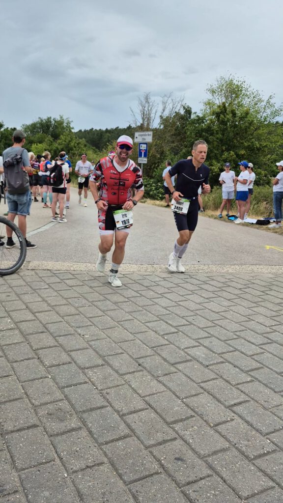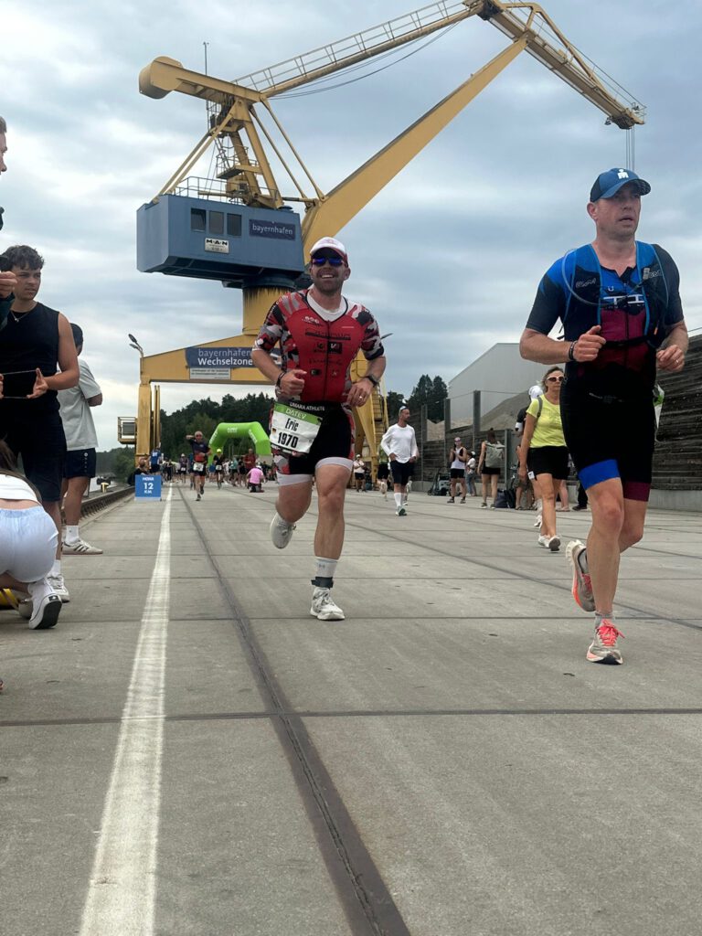 Nach gut 8 Min in der Wechselzone, ging es dann aufs Rad und das lief besser als erwartet. Ich hatte zum einen in Summe verhältnismäßig wenig Radkilometer und zum anderen auch wenig längere Radeinheiten. Aber da fallen wahrscheinlich die Lebenskilometer ins Gewicht. Und bei der Stimmung in Greding und am Solarer Berg, fliegt man quasi die Anstiege auch. 5:39h ist daher auch eine gute Zeit.